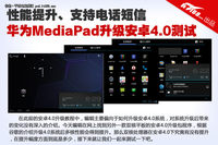 华为MediaPad在升级安卓4.0系统以后,CPU处理性能和2D显示性能方面均有提高。在内置功能方面,除了安卓4.0系统本身支持的新功能之外,电话和短信功能均是此次升级安卓4.0系统后比较大的亮点。在游戏和视频播放方面是,升级后运行流畅性均有小幅度提升并且整体兼容性较好。